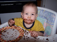 We celebrated Jonathan’s first Birthday a few days ago. We didn’t really do a big party but we had a few friends over and baked a chocolate cake for the occassion. It was Jonathan’s first time to have chocolate cake. That is a tradition we have had for each of our children, on their first birthday they get their first taste of chocolate cake. It is also fun for pictures.